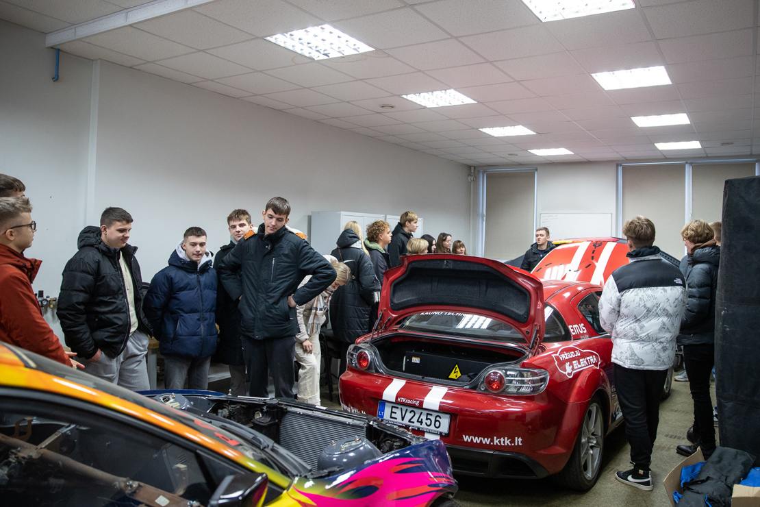 - Antrieji kolegijoje lankėsi Šilalės Gaudėšiaus gimnazijos 11-12 klasės moksleiviai. Gerai nusiteikę mokiniai dalyvavo edukacijoje „Mazda RX -8 varoma elektros varikliu“, kurią vedė P. Vitonis. Po edukacijos moksleiviai lankėsi Aviacijos inžinerijos centre, kuriame iš arčiau apžiūrėjo lėktuvo sudedamąsias dalis. Vizito metu mokiniai taip pat sudalyvavo kolegijos prezentacijoje, kurią vedė R. Zablackaitė. Jos metu kolegijos svečiai buvo supažindinti su studijų programomis ir įstojimo tvarka.